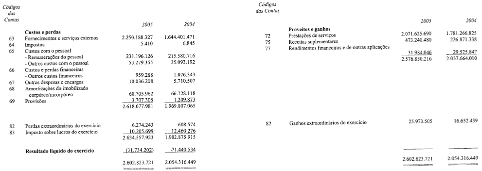 Demonstração dos resultados do exercício findo em 31 de Dezembro de 2005