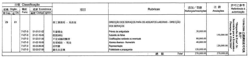 根據九月二十七日第53/93/M號法令第十九條的規定,茲公佈審計長於二零零六年六月二十八日批示所批准的審計署二零零六年財政年度本身預算第二次修改: