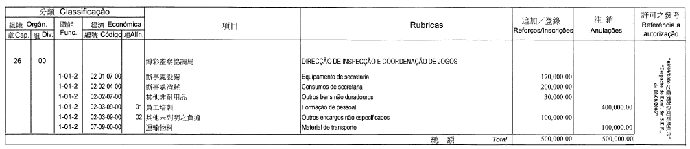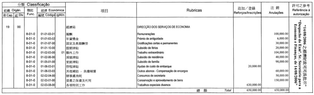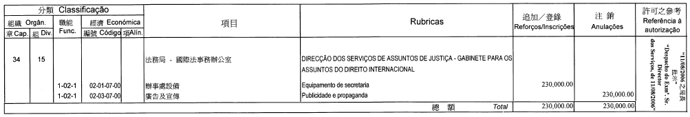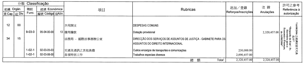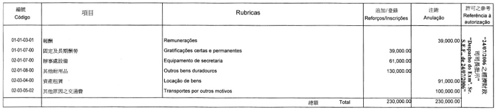Por deliberações da Ex.ma Mesa da Assembleia Legislativa, de 9 de Agosto de 2006: