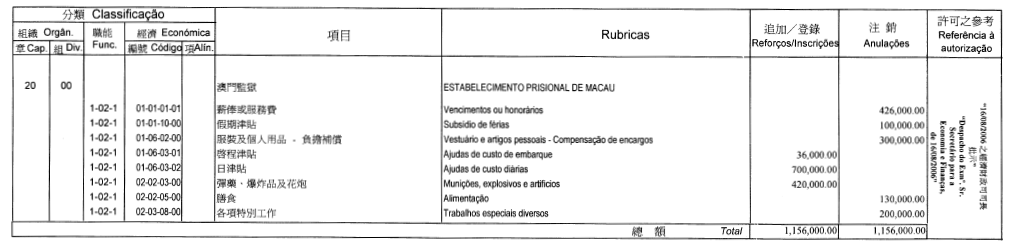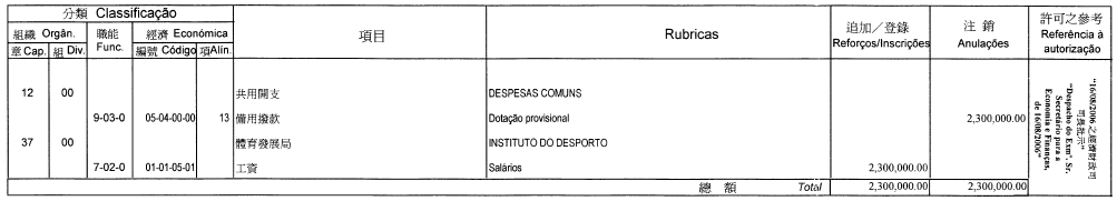 | 01-01-02-01 | Pessoal além do quadro — Remunerações | $ 171,000.00 | |
