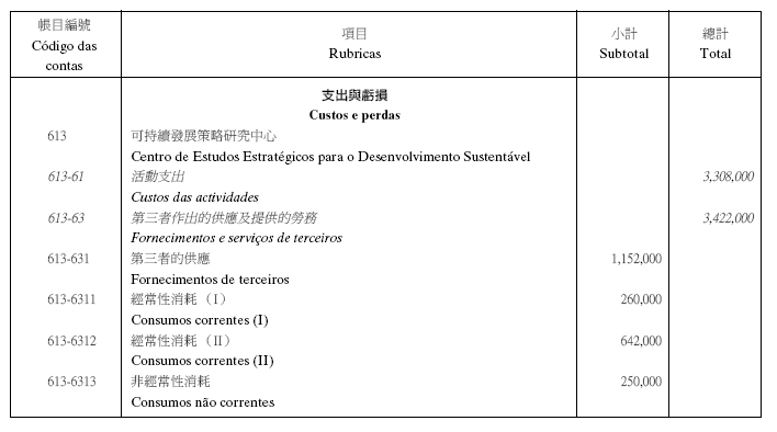 Orçamento individualizado do Centro de Estudos Estratégicos para o Desenvolvimento Sustentável para 2006