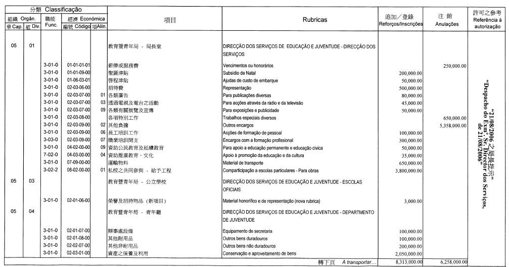 Direcção dos Serviços de Educação e Juventude, aos 24 de Agosto de 2006. — O Director dos Serviços, Sou Chio Fai.