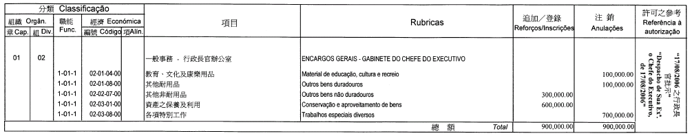 De acordo com o artigo 19.º do Decreto-Lei n.º 53/93/M, de 27 de Setembro, publica-se a 2.ª alteração orçamental da Fundação Macau, autorizada por despacho de S. Ex.ª o Chefe do Executivo, de 21 de Agosto de 2006: