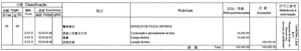 Polícia Judiciária, aos 18 de Agosto de 2006. — O Director, Wong Sio Chak.