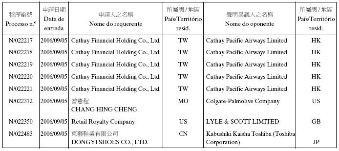 Em conformidade com a alínea d) dos n.os 1 e 2 do artigo 10.º do RJPI, aprovado pelo Decreto-Lei n.º 97/99/M, de 13 de Dezembro, e de acordo com os artigos 275.º a 277.º do referido diploma, cabe recurso para o Tribunal Judicial de Base, dos despachos abaixo mencionados, no prazo de um mês a contar da data desta publicação.