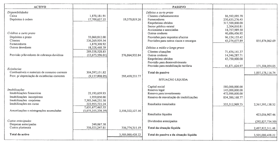 O Relatório dos Auditores Externos, tido em devida conta pelo Conselho Fiscal, refere que os documentos de prestação de Contas apresentados evidenciam de forma satisfatória a situação financeira da Companhia em 31 de Dezembro de 2005 e os resultados das operações referentes ao exercício findo naquela data, em observância dos princípios contabilísticos da empresa e dos termos do Contrato de Concessão.