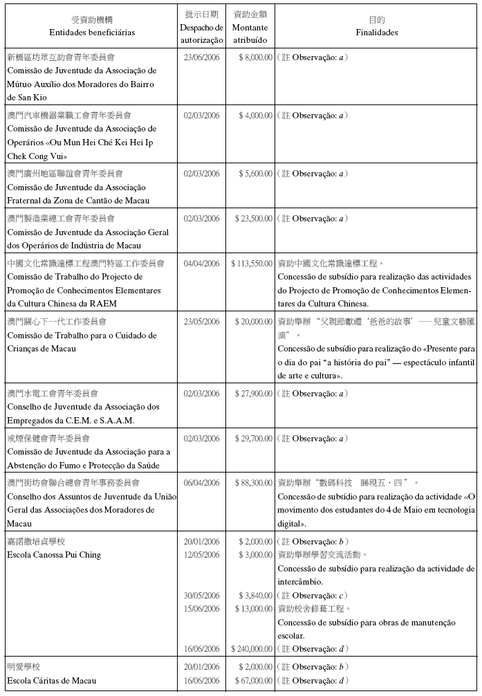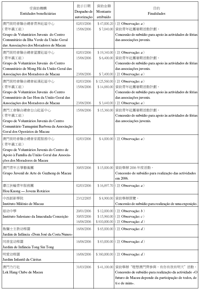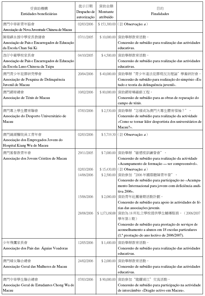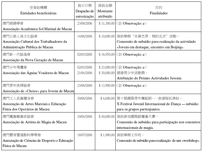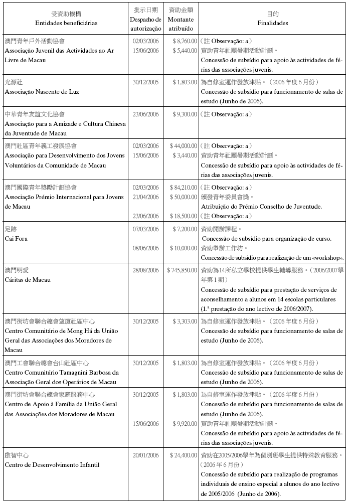 - a. Concessão de subsídio para apoio financeiro ao associativismo juvenil em 2006.