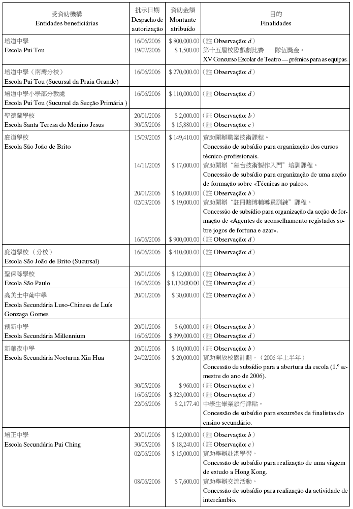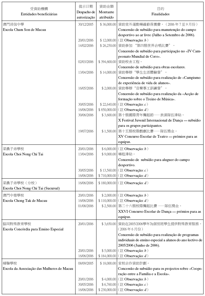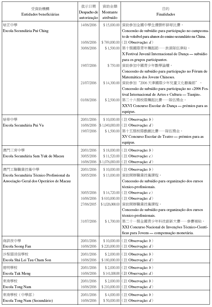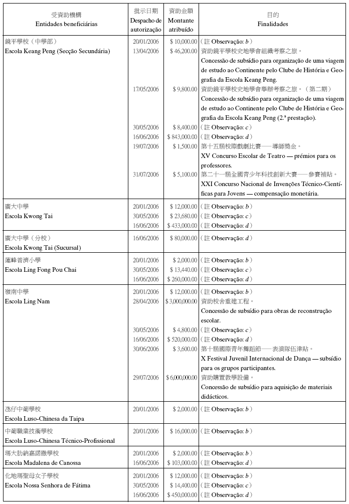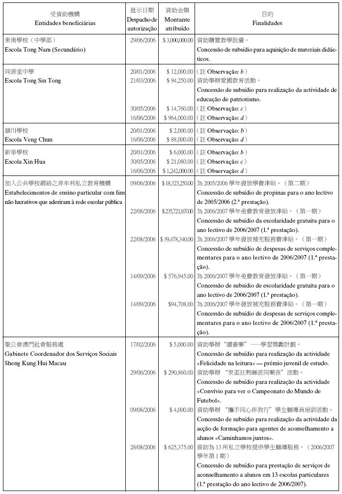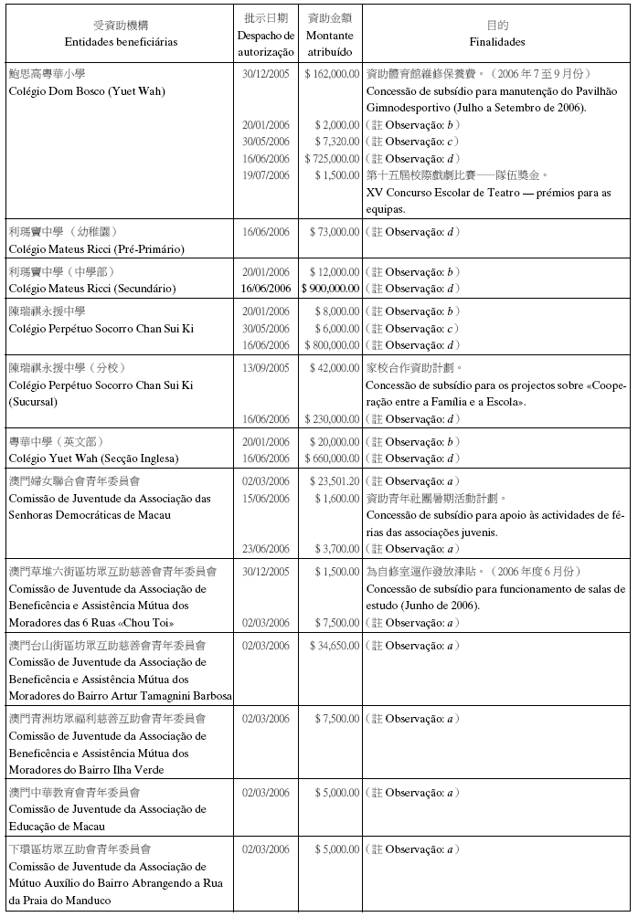 Em cumprimento do Despacho n.º 54/GM/97, de 26 de Agosto, referente aos apoios financeiros concedidos a particulares e instituições particulares, vem a Direcção dos Serviços de Educação e Juventude publicar a listagem dos apoios concedidos no 3.º trimestre de 2006: