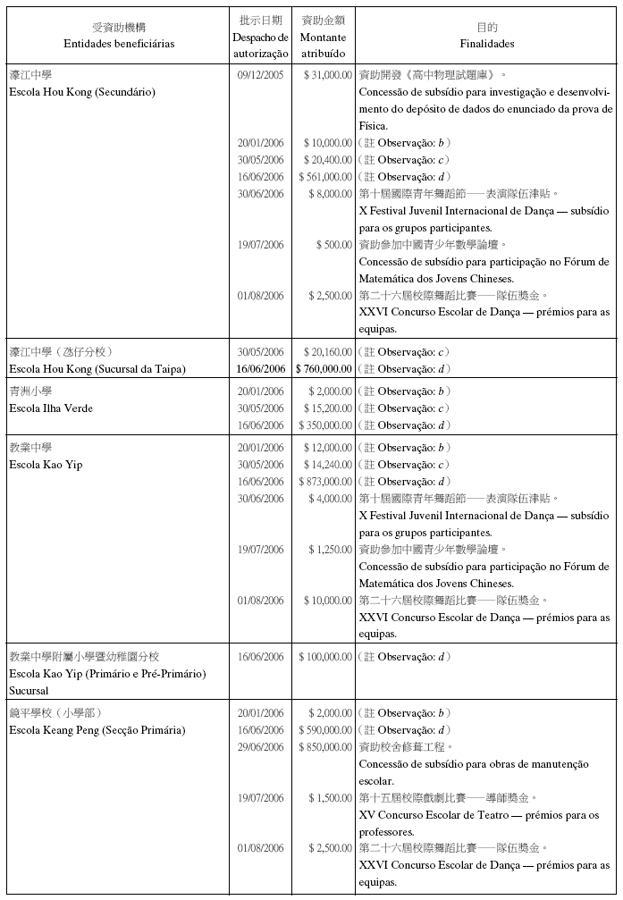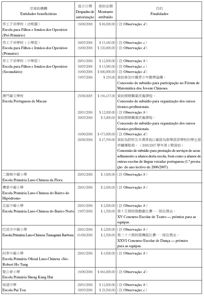 - d. Subsídio para Melhoria do Ambiente Escolar e Aquisição de Materiais Didácticos (ano lectivo de 2006/2007).