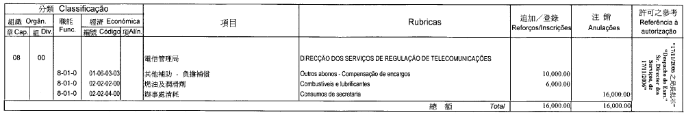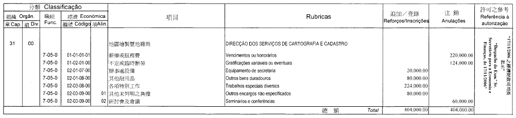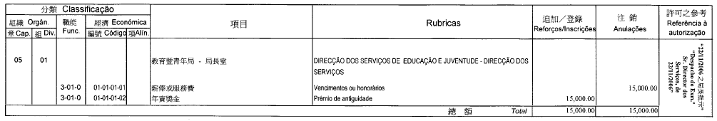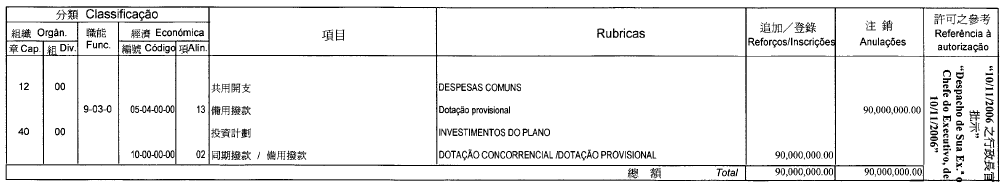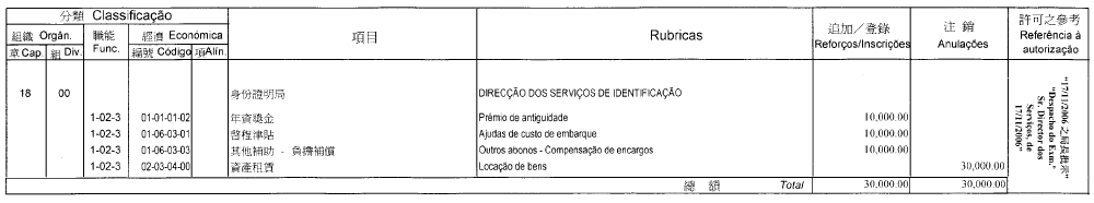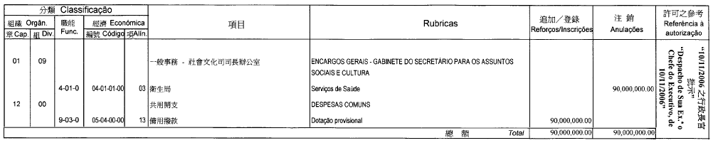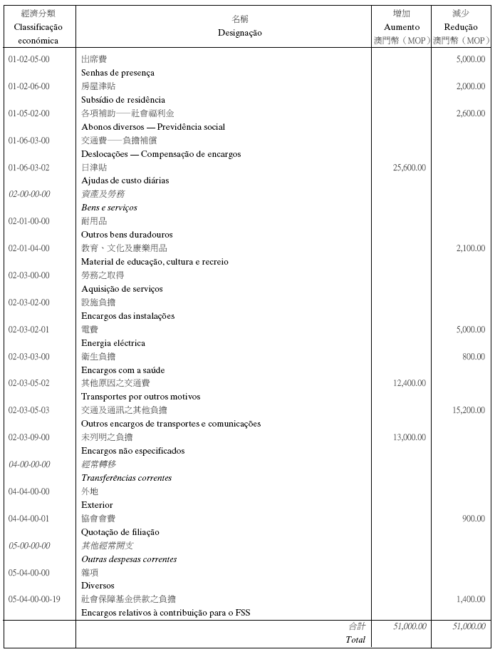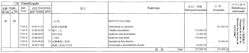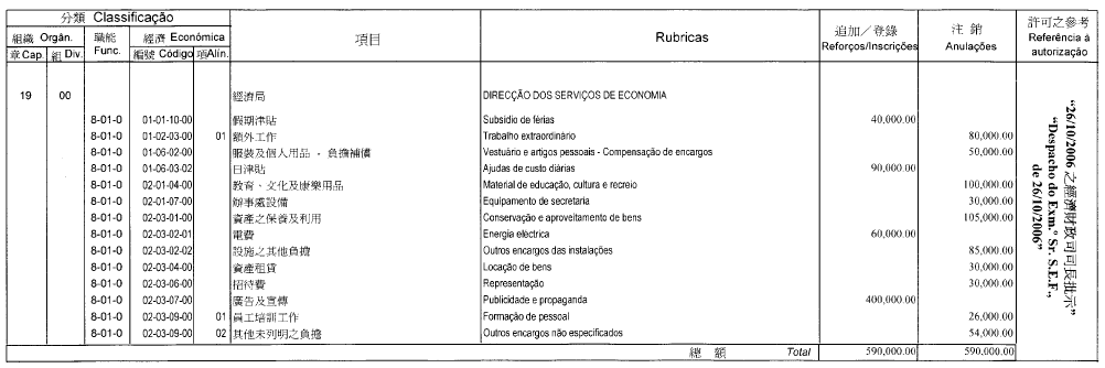 根據九月二十七日第53/93/M號法令第十九條的規定,茲公佈由經濟財政司司長於二零零六年十一月二十日批示核准的消費者委員會二零零六財政年度預算的第三次修改: