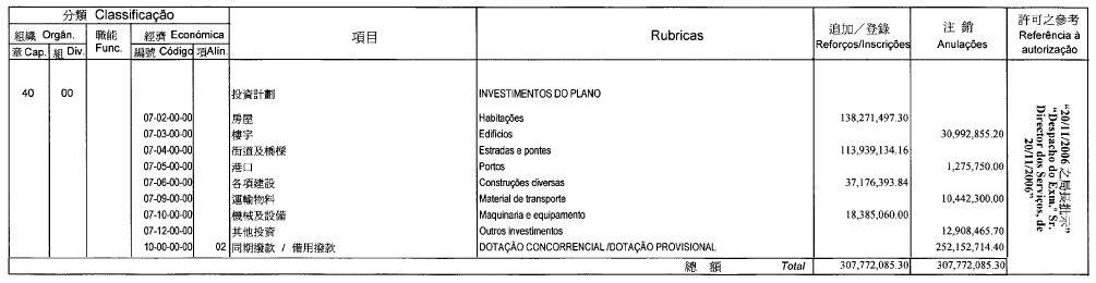 按照經濟財政司司長於二零零六年十一月十七日根據第15/2006號行政法規第四條第三款的規定,並行使經第6/2005號行政命令確認的第12/2000號行政命令所授予的權限而作出的批示: