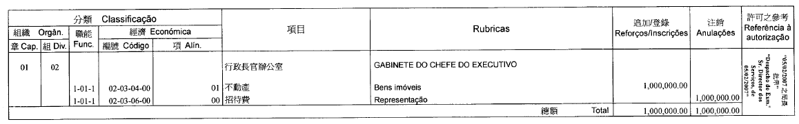 De acordo com o disposto pelo artigo 41.º do Regulamento Administrativo n.º 6/2006, publicam-se as seguintes transferências de verbas (OR/2007), autorizadas nos termos do n.º 2 do Despacho do Chefe do Executivo n.º 347/2006: