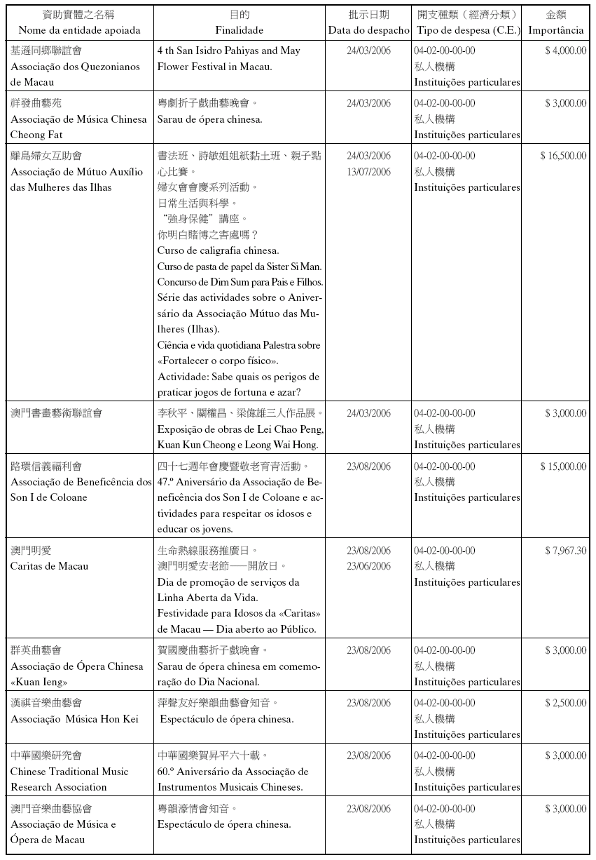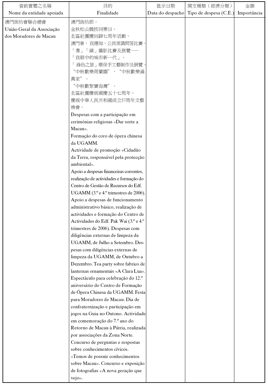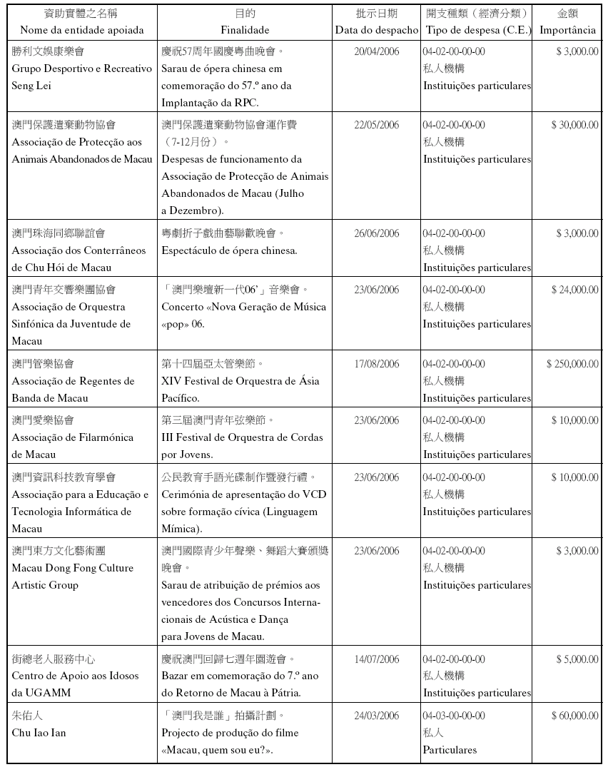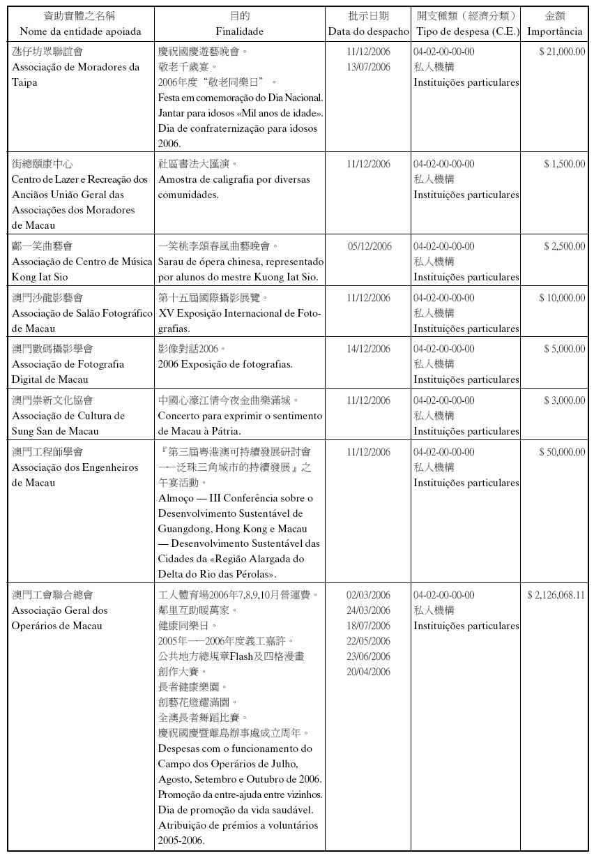 (Homologada por despacho de S. Ex.ª o Chefe do Executivo, de 26 de Março de 2007).