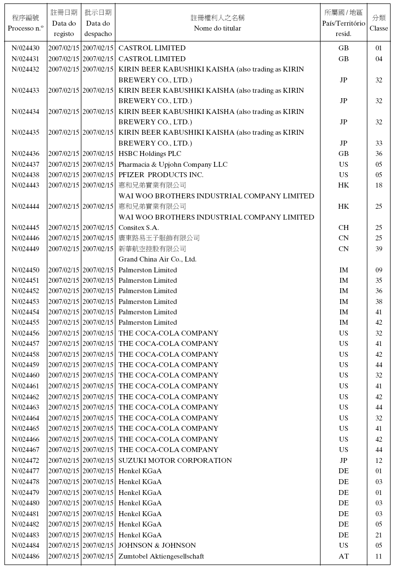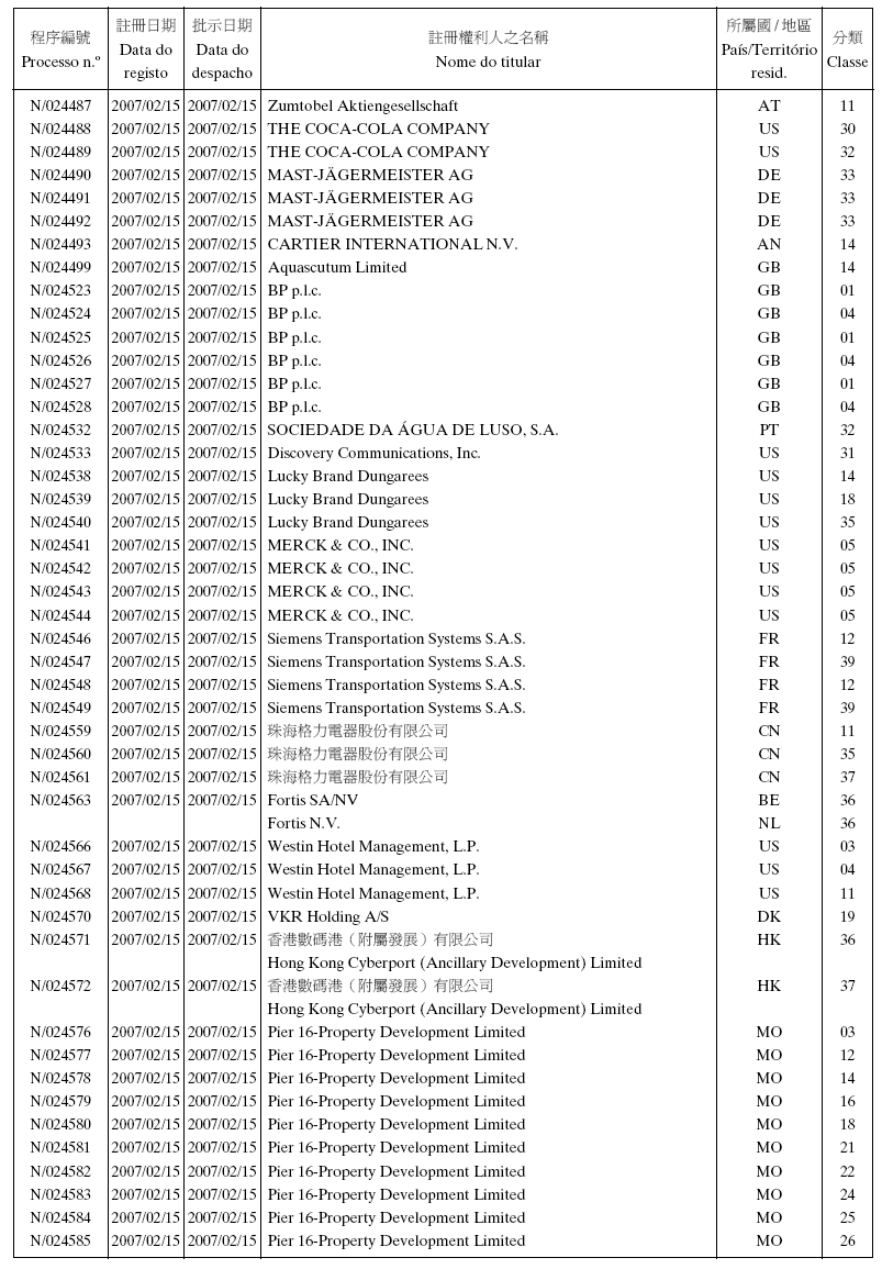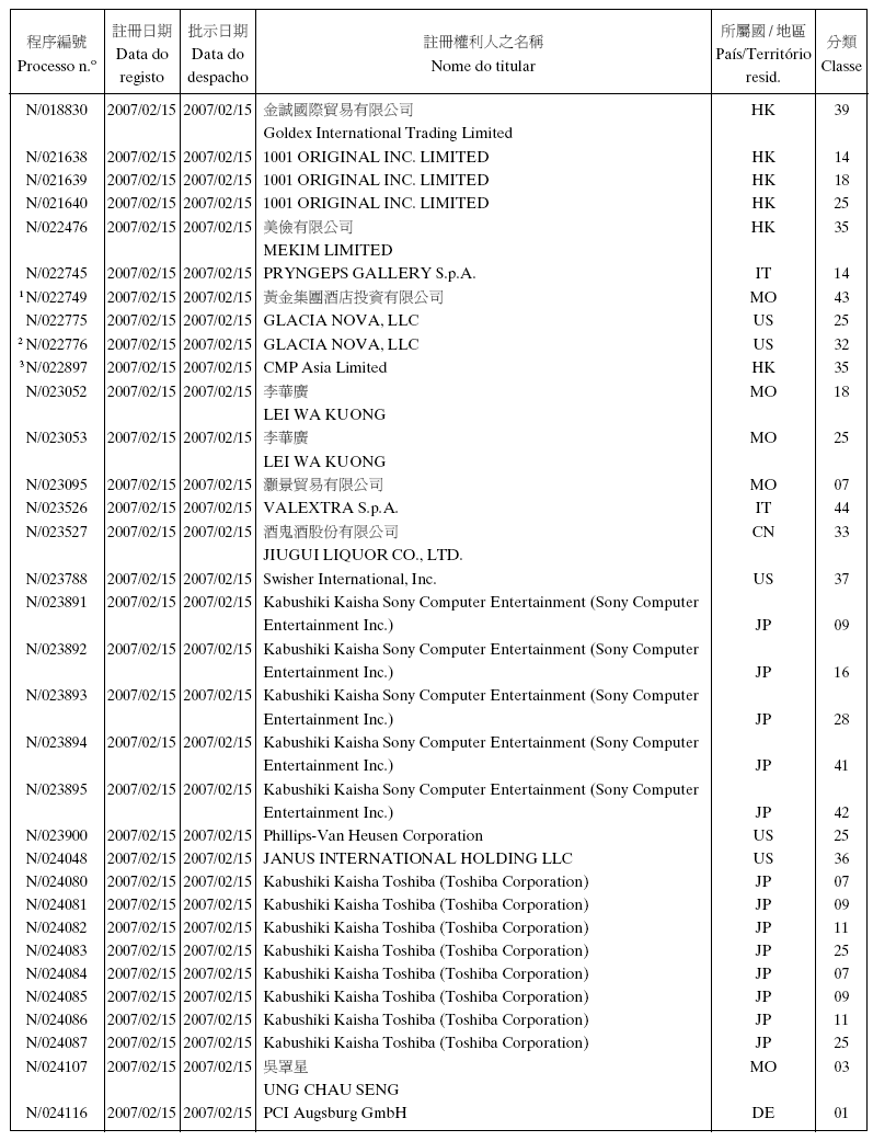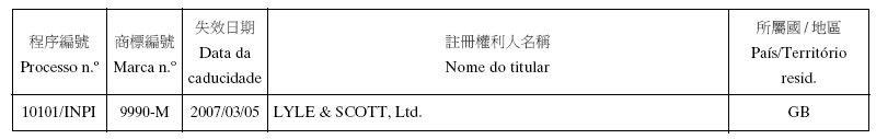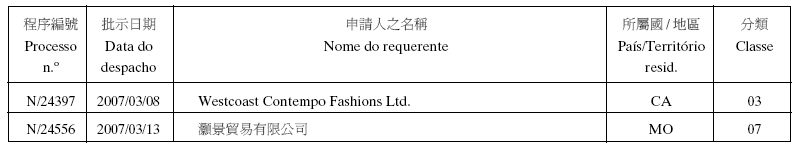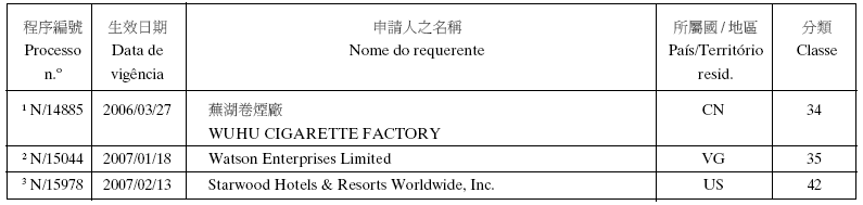 - 3. Não foi concedido o direito no uso exclusivo da (s) palavra (s) «澳門珠寶鐘錶展覽會» , «MACAU» e «JEWELLERY & WATCH FAIR».