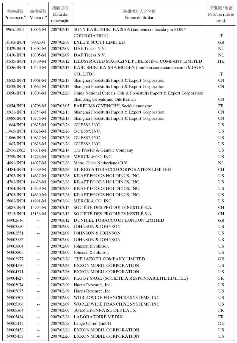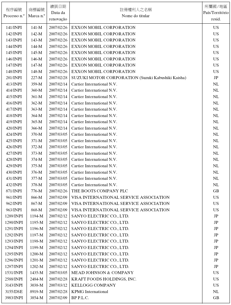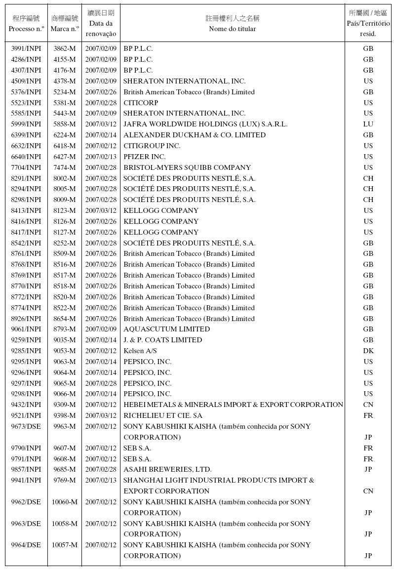 Data de pedido de extensão: 2007/03/02
