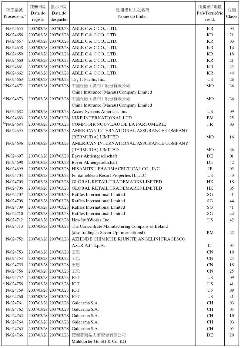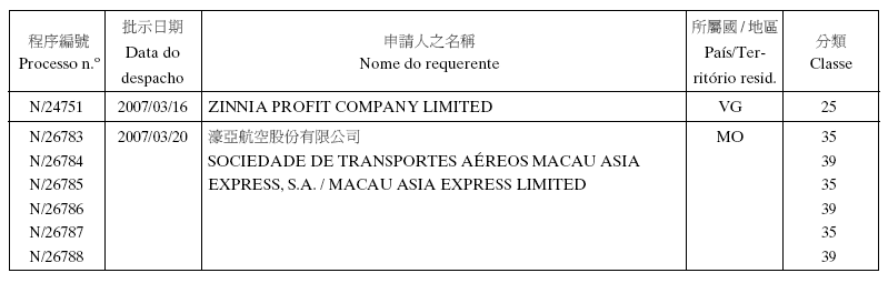 35 不批給“(澳門)股份有限公司”及“(MACAU)COMPANY