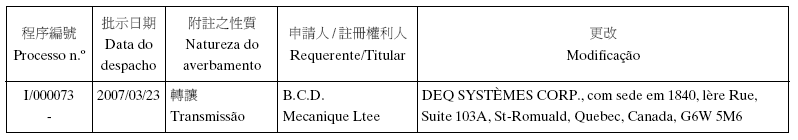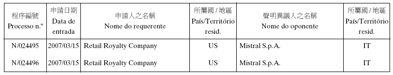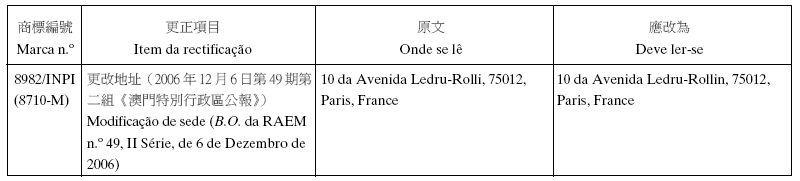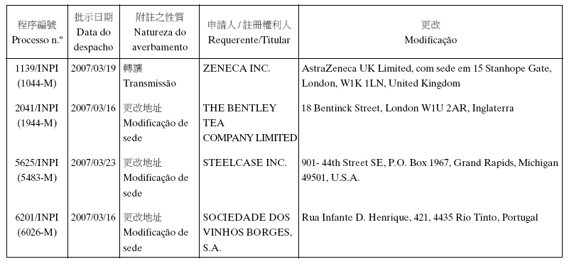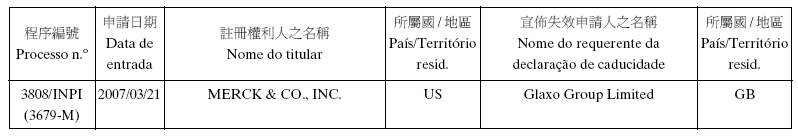 根據經十二月十三日第97/99/M號法令核准之《工業產權法律制度》第十條第一款d)項、第二款及第二百七十五條至第二百七十七條之規定,可於本公佈日起計一個月期限內就下列批示向初級法院提起上訴。