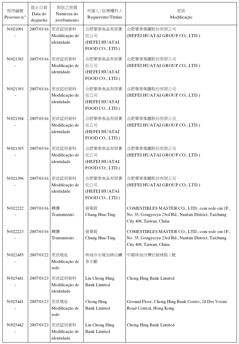 2 不批給“粉麵食館”及“ESTABELECIMENTO DE COMIDAS”詞語的專屬使用權利。
