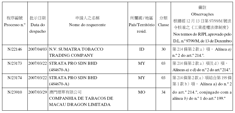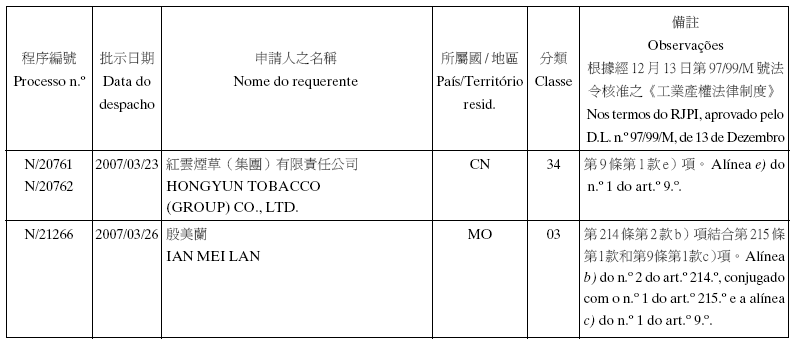 N/23060?2007年4月4日第14期第二組《澳門特別行政區公報》第2547頁,刊登的拒絕,應視作無效。