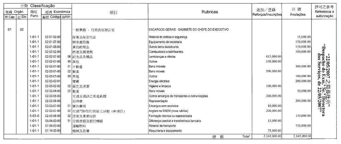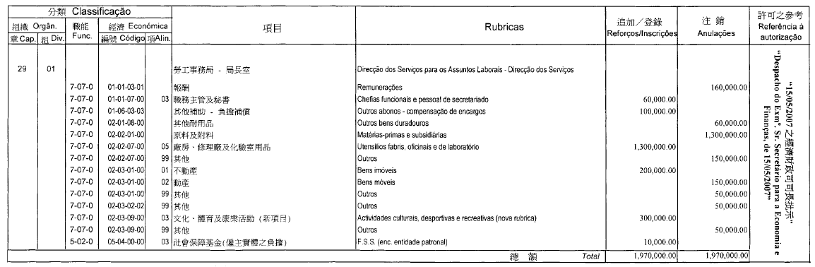 Por despacho de S. Ex.ª o Chefe do Executivo, de 23 de Maio de 2007: