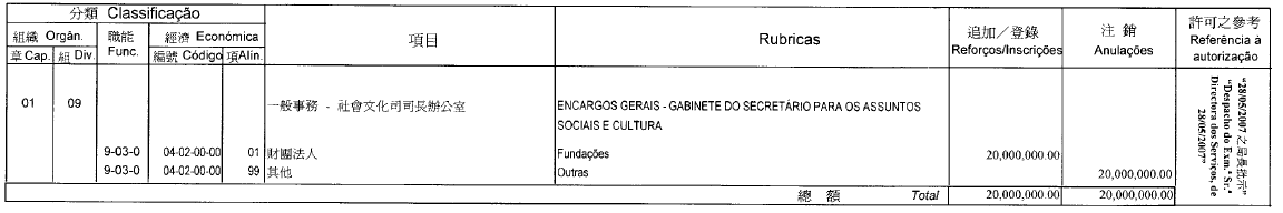 Por despacho do Ex.mo Senhor Secretário para os Assuntos Sociais e Cultura, de 16 de Maio de 2007: