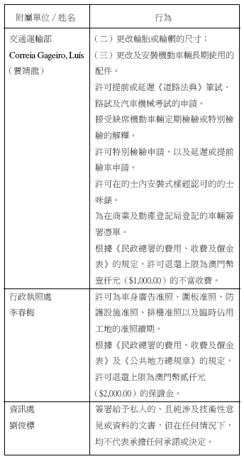 (1)根據第06/PCA/2007號批示,且不影響由管理委員會成員所作的指示下,執行非專屬管理委員會成員的權限的一般文書行為;