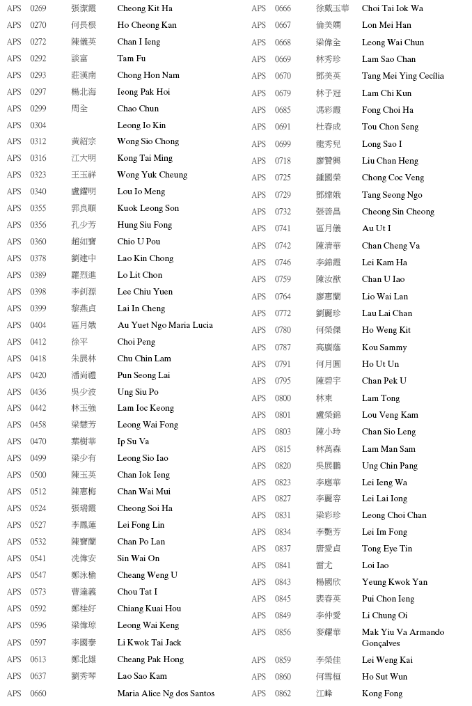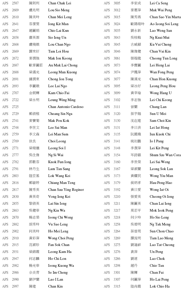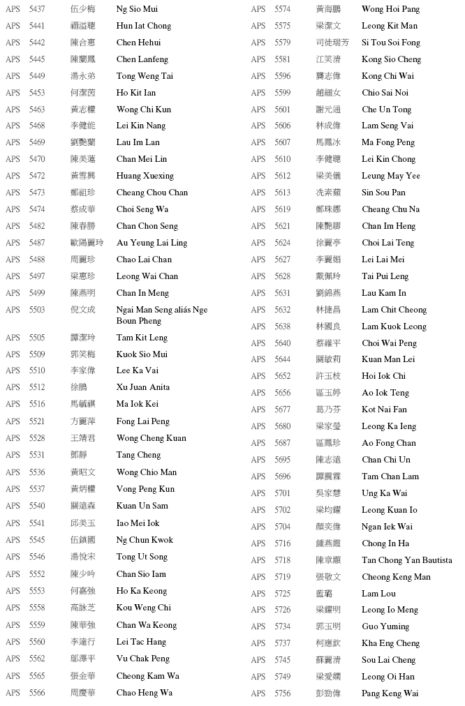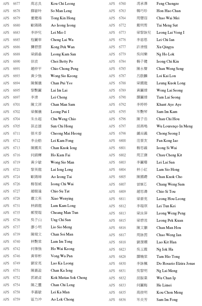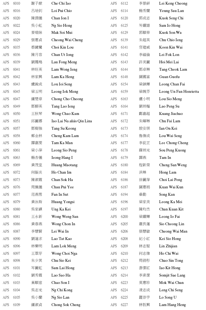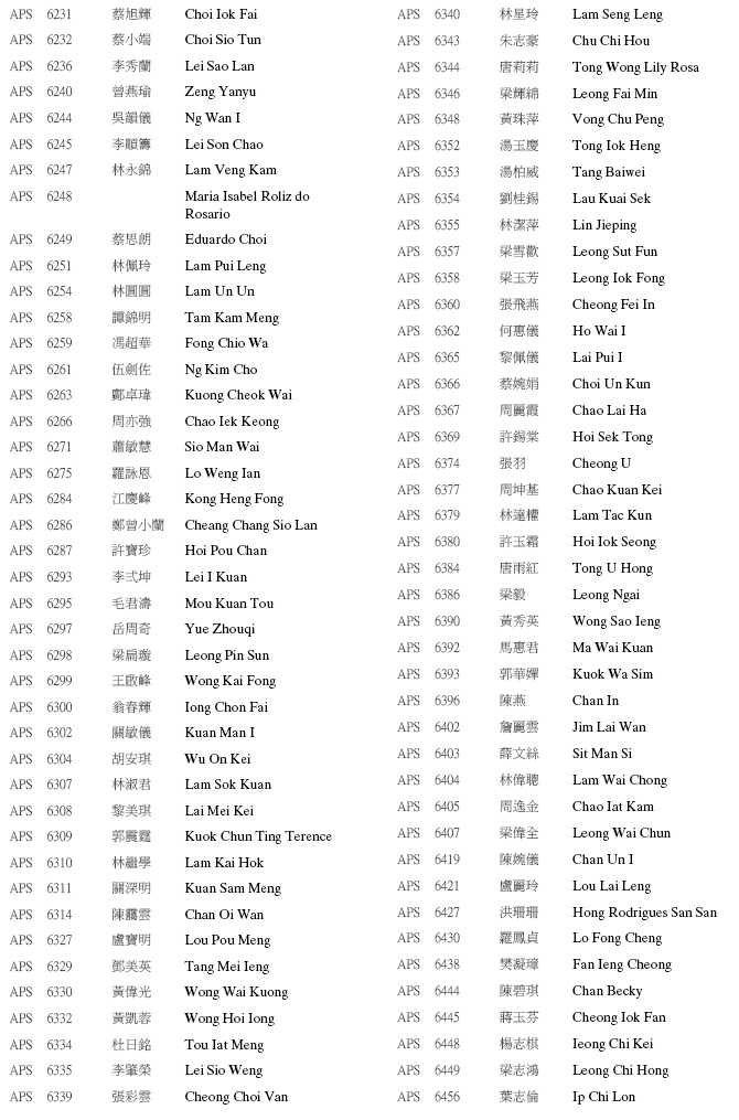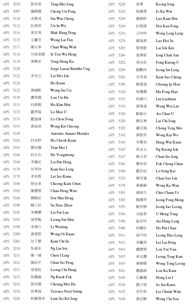 根據現行《澳門公共行政工作人員通則》第五十七條第五款之規定,本名單被視為確定名單。