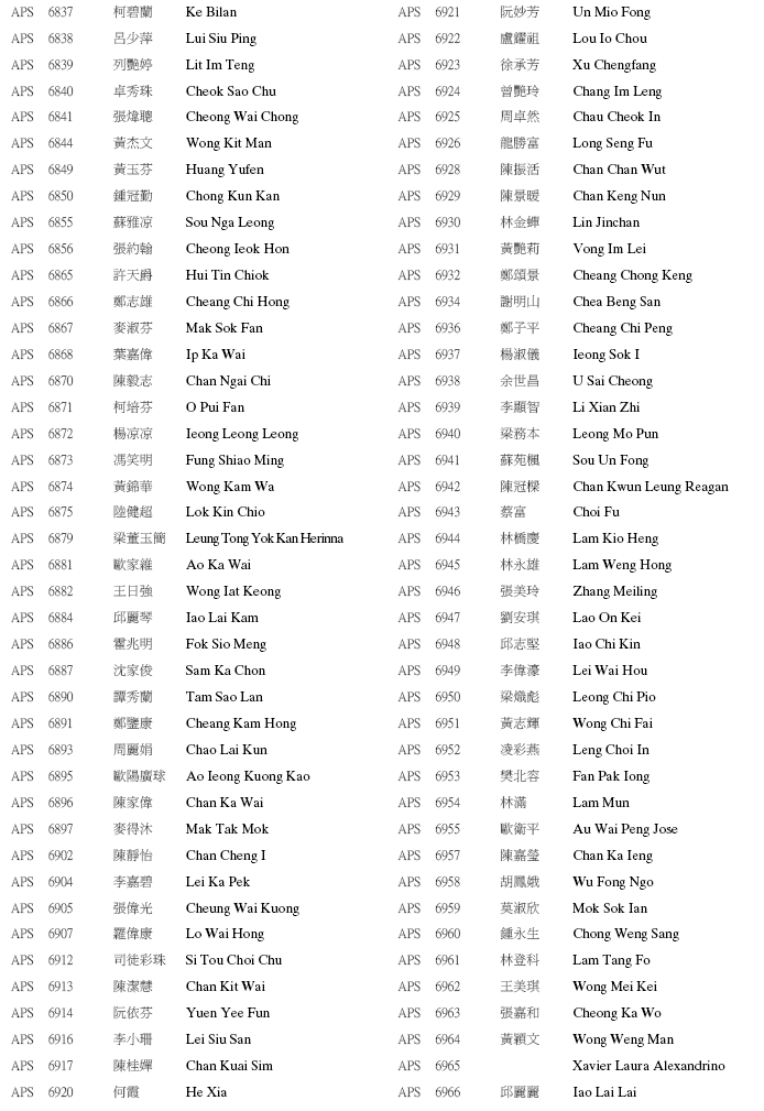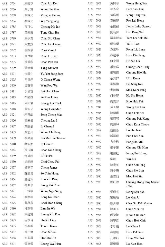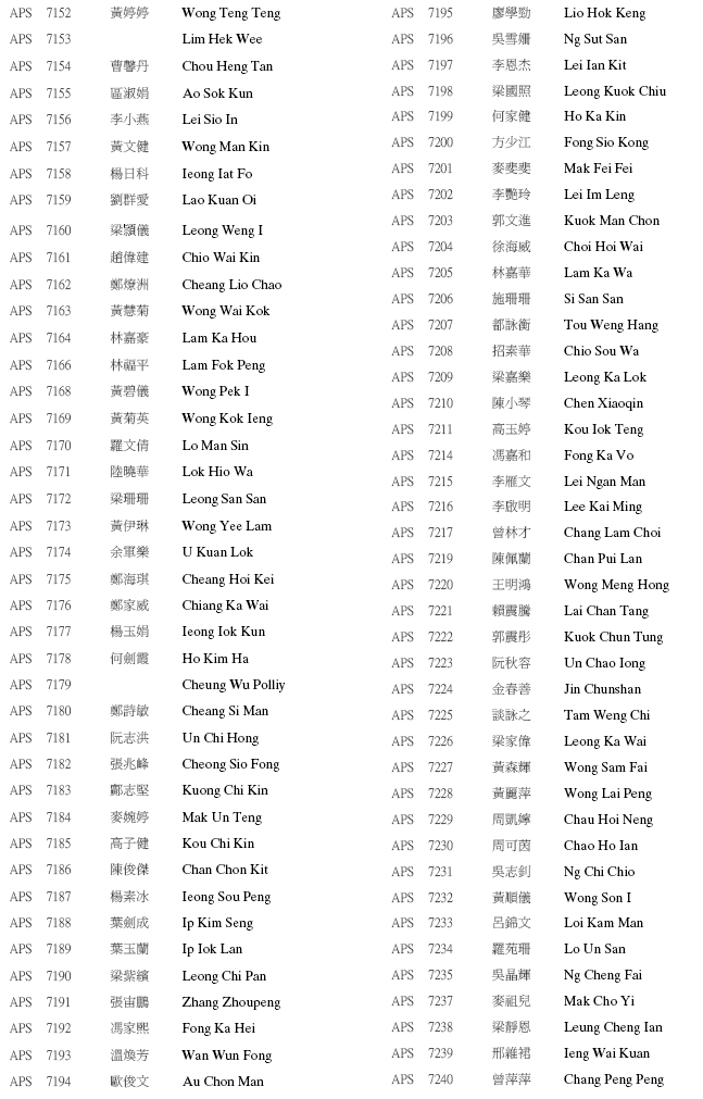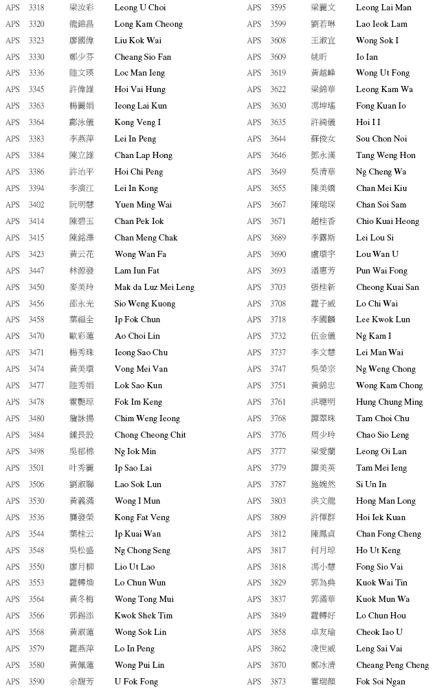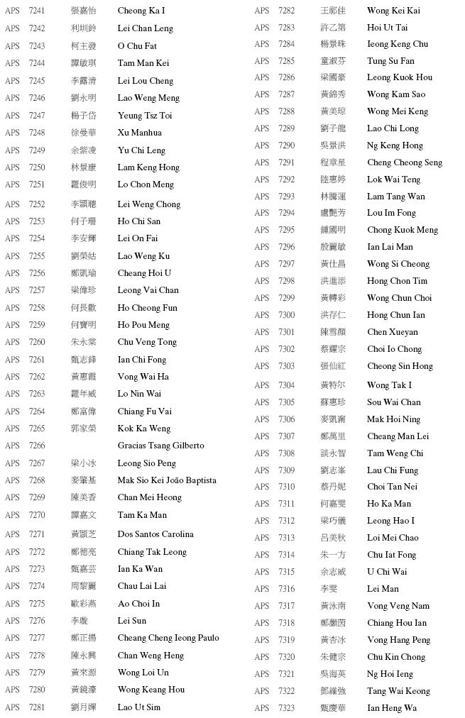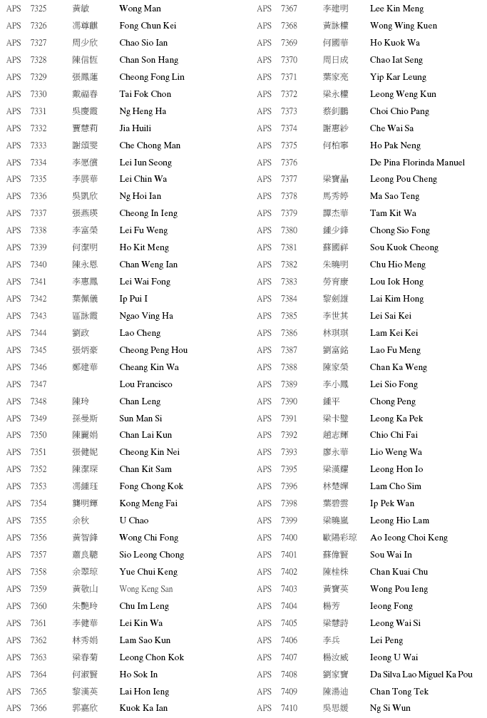 根據現行《澳門公共行政工作人員通則》第五十七條第五款之規定,本名單被視為確定名單。