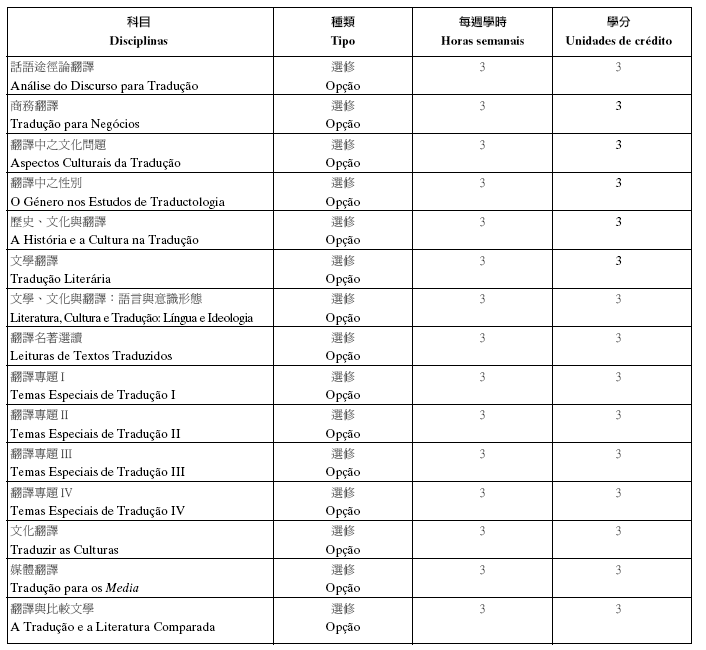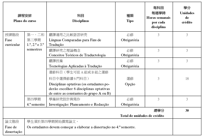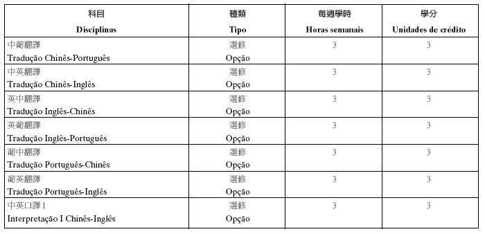 四、授課語言:按各語言組(中/葡、中/英、葡/英)的需要,以中文、葡文或英文授課。