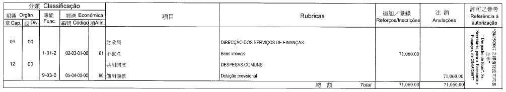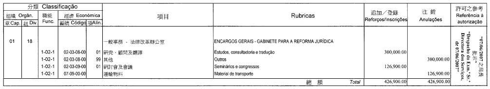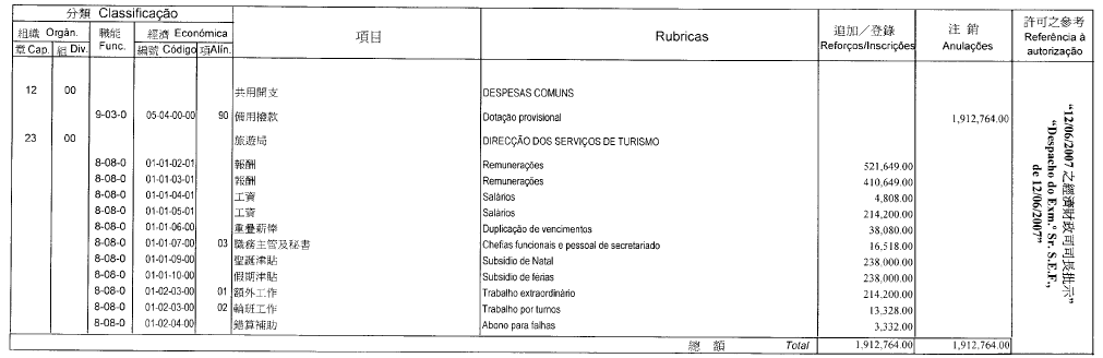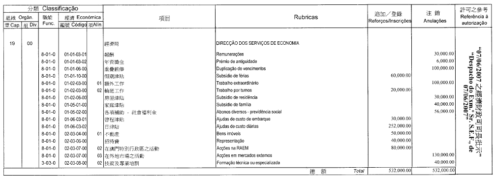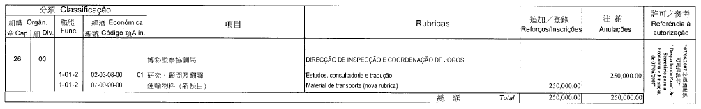 根據第6/2006號行政法規第四十一條規定,公佈經行政法務司司長於二零零七年五月二十九日批示核准之印務局二零零七年度本身預算第一次修改: