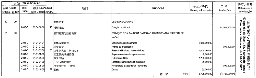 Lam Ka Wong — alterada, por averbamento, a cláusula 3.ª do seu contrato além do quadro com referência à categoria de terceiro-oficial, 3.º escalão, índice 220, nos SASG, nos termos dos artigos 25.º, n.º 3, e 26.º, n.º 3, do ETAPM, em vigor, a partir de 9 de Junho de 2007.