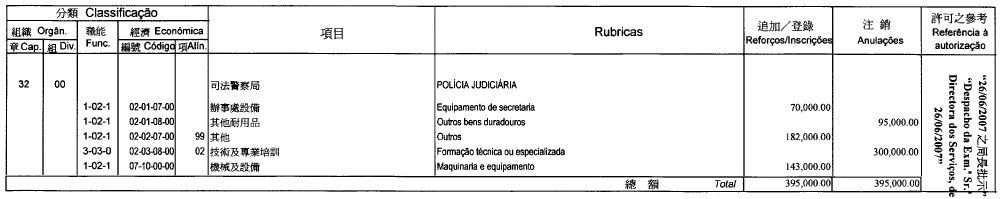 Cheang Chi Hong, Cheang, Wai Keong, Hui Kuok Lin e Chan Kuok Tun, como auxiliares, 6.º escalão, índice 150, a partir de 3, 8 e 13 de Julho e 1 de Agosto de 2007, respectivamente.