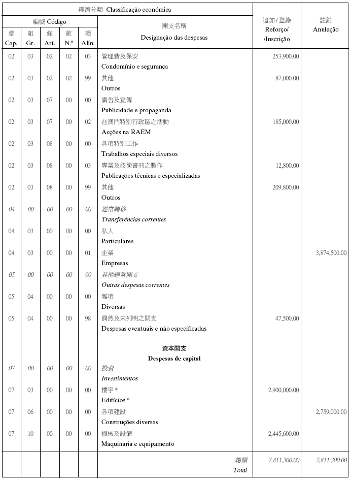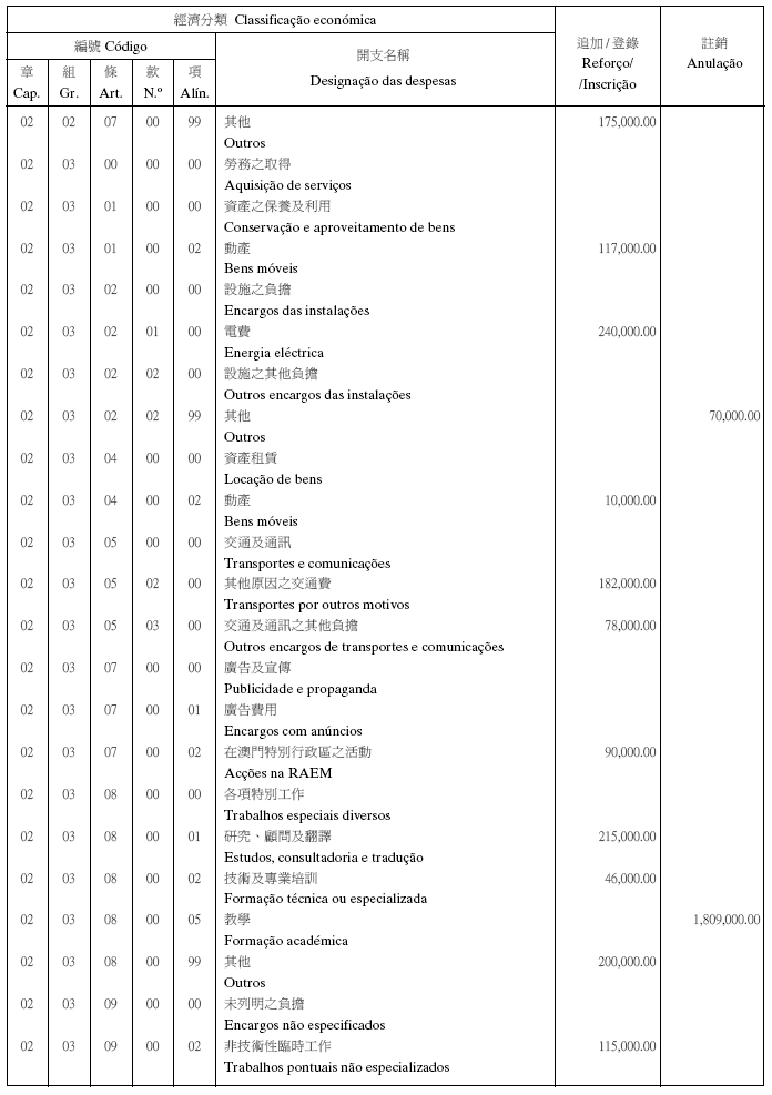 3.ª alteração ao orçamento privativo do Instituto Politécnico de Macau de 2007