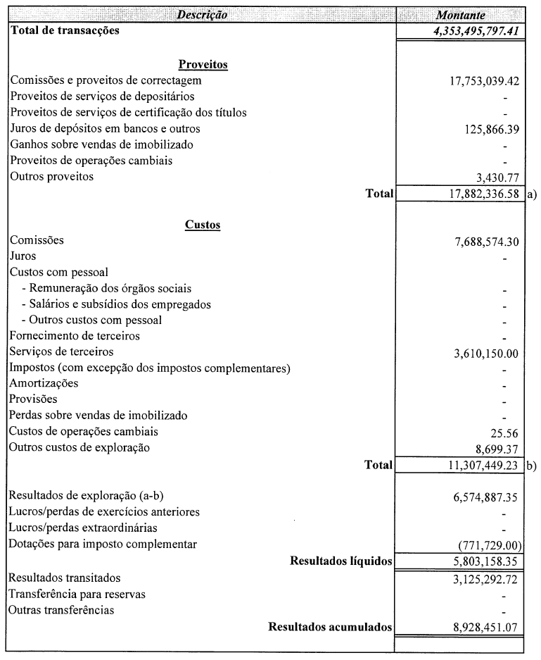 Demonstração de resultados referente ao exercício de 1 de Janeiro a 31 de Dezembro de 2006