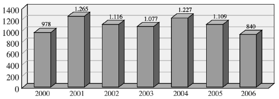 EVOLUÇÃO DO NÚMERO DE QUEIXAS RECEBIDAS ENTRE 2000 E 2006