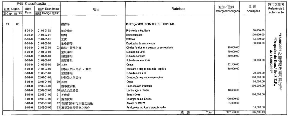 Por despacho de S. Ex.ª o Chefe do Executivo, de 30 de Julho de 2007: