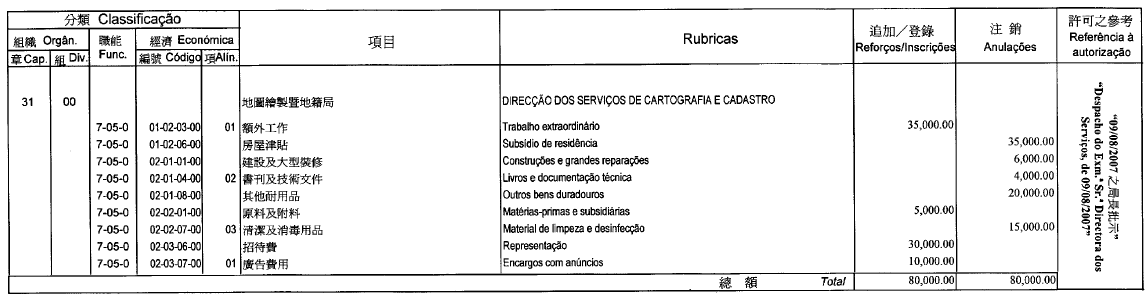 Por despacho do director dos Serviços, de 9 de Agosto de 2007: