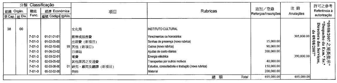 Por deliberação da Ex.ma Mesa da Assembleia Legislativa, de 10 de Agosto de 2007: