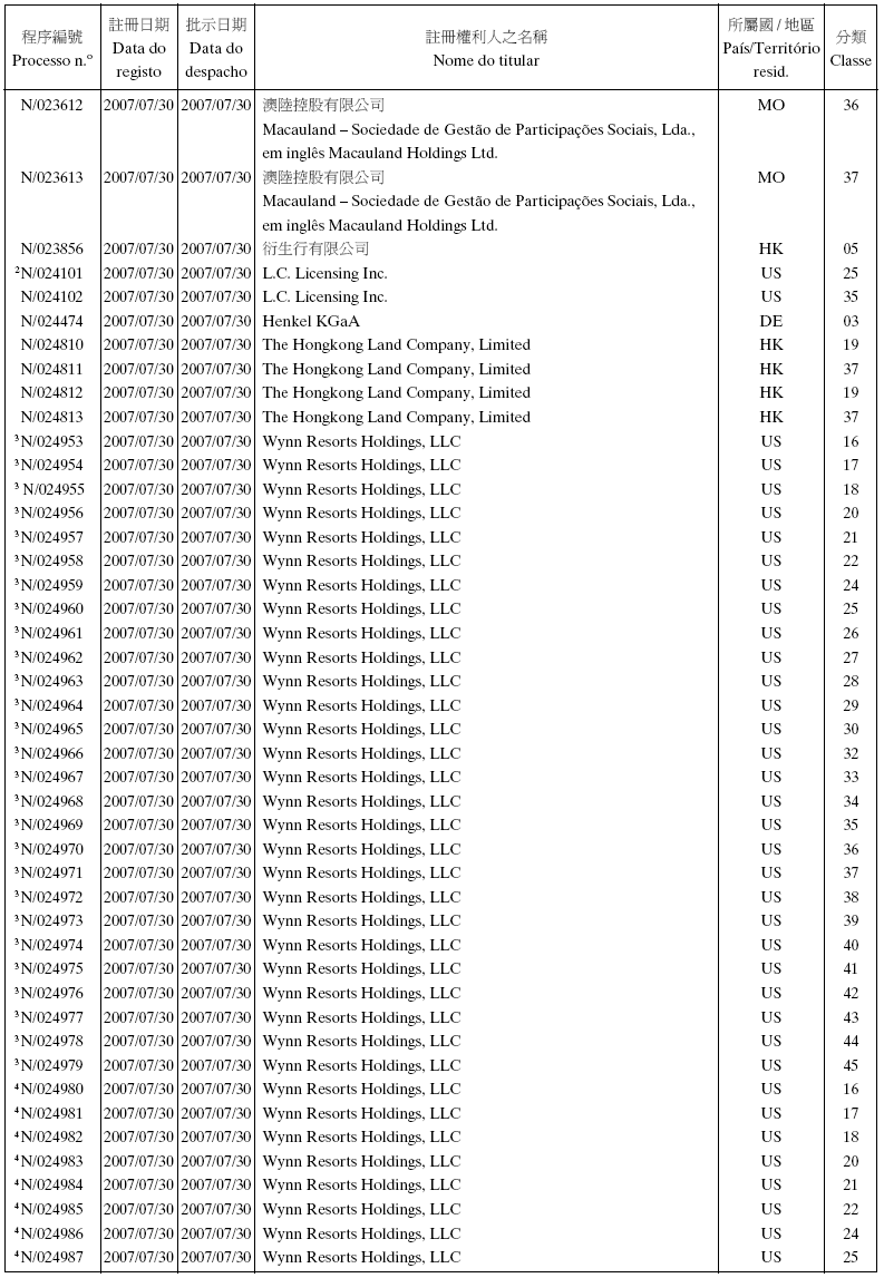 4 ¤£§åµ¹¡§MACAU¡¨¤Î¡§COTAI¡¨µü»yªº±MÄݨϥÎÅv§Q¡C