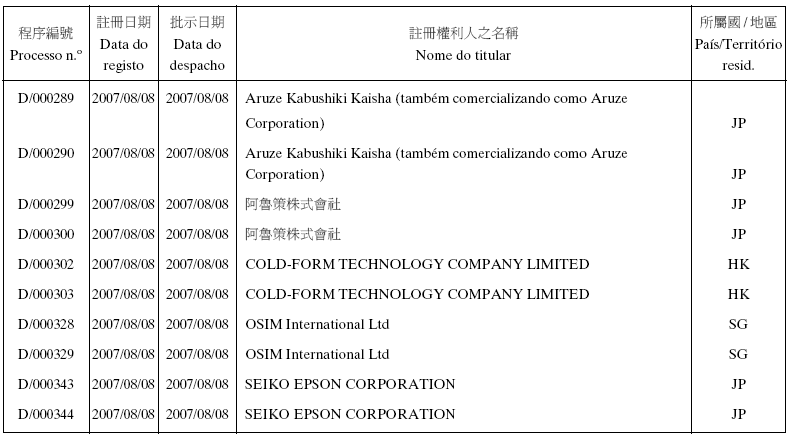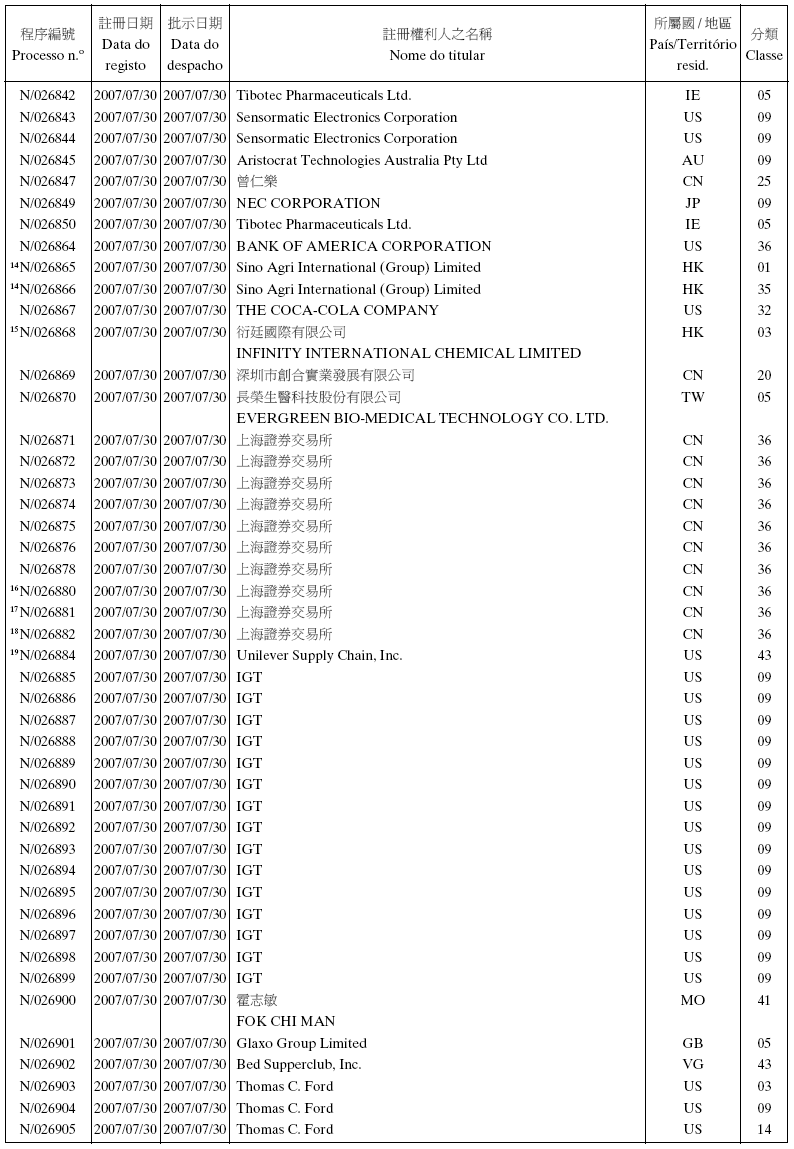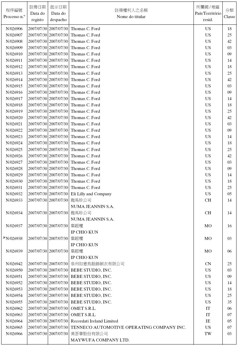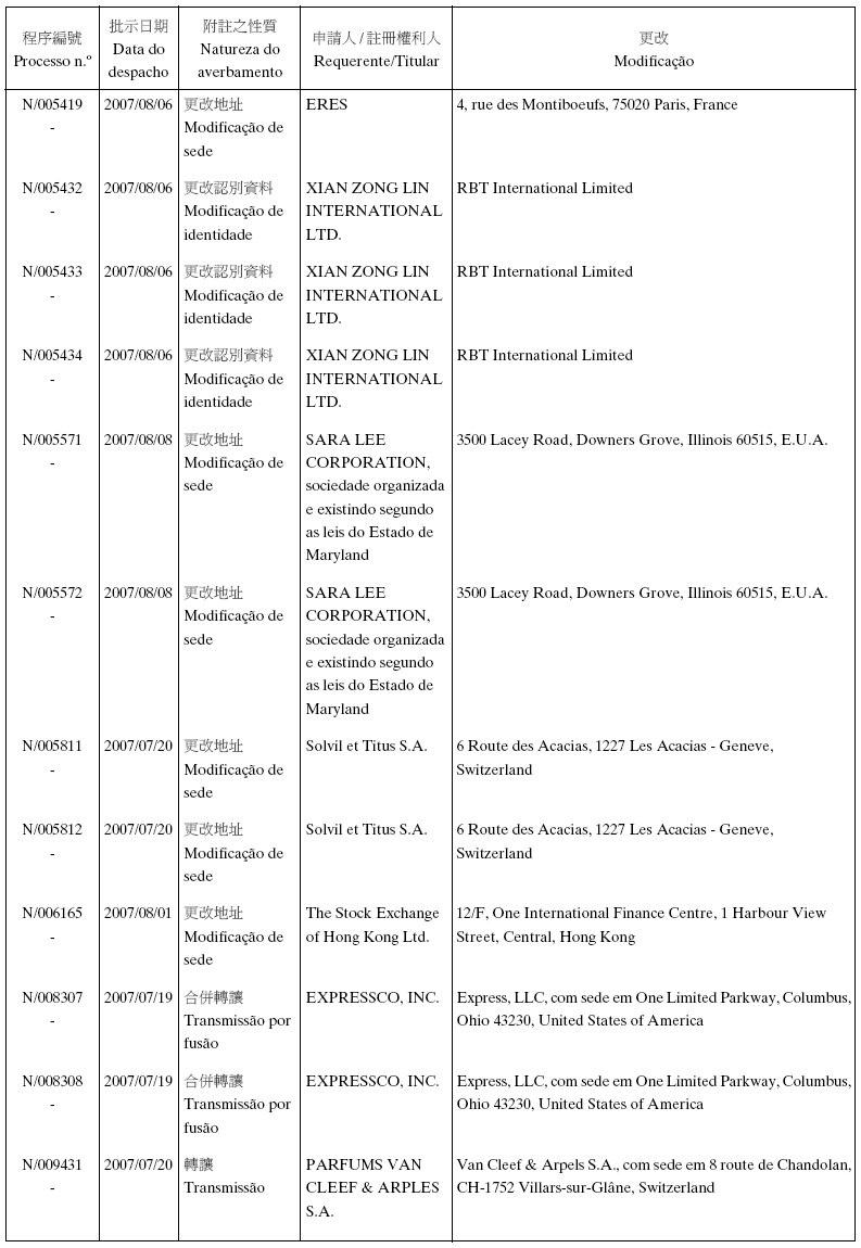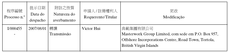 ¥Ó½Ð¤H¡GYoung Man Wah Dilys, Room 702, New World Tower I, 16-18 Queen¡¦s Road Central, Hong Kong.