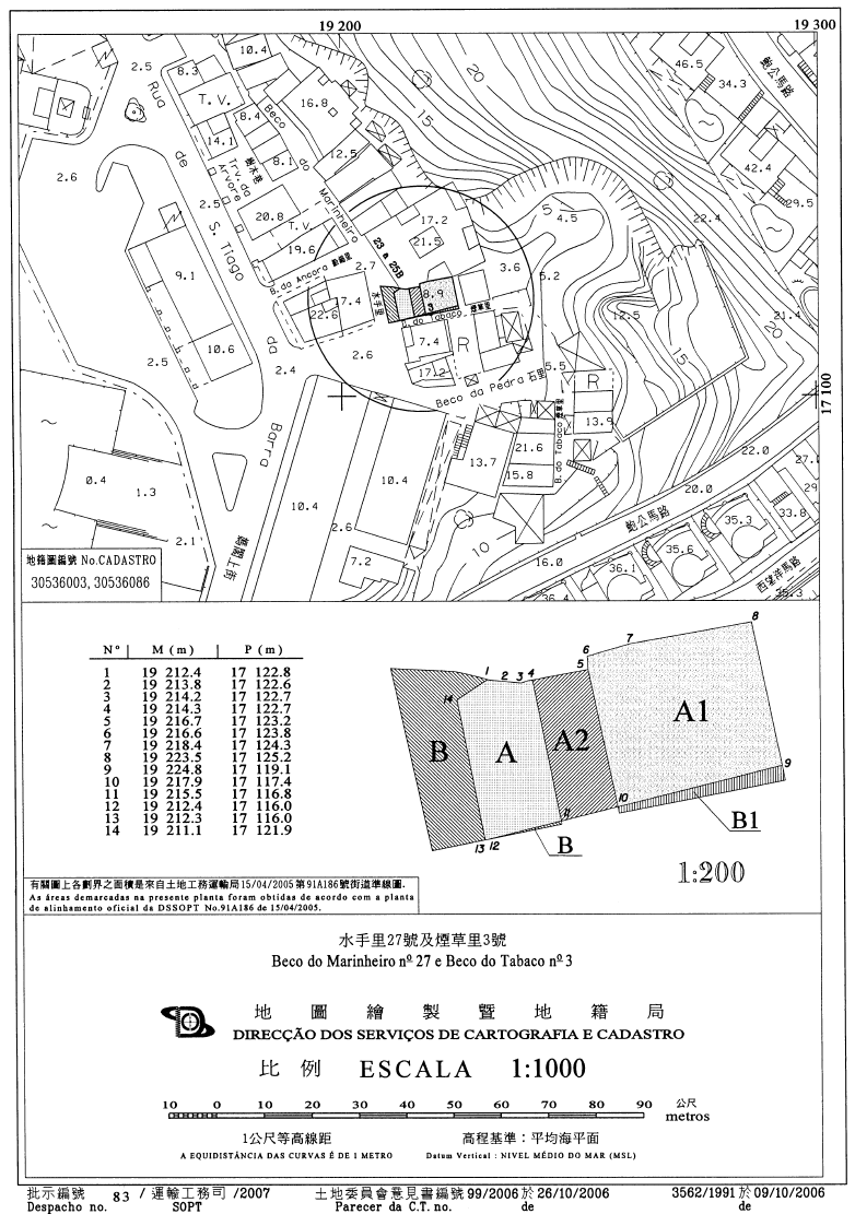 三、位於水手里27號的土地,在地圖繪製暨地籍局於二零零六年十月九日發出的第3562/1991號地籍圖中以字母“A”及“B”標示,而位於煙草里3號的土地則以字母“A1”及“B1”標示。