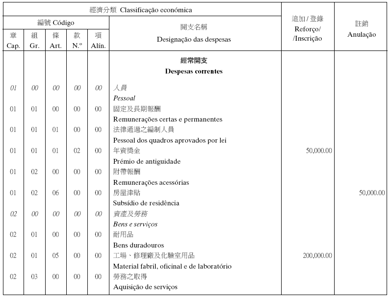 | 編號 | 開支名稱 | ||||||