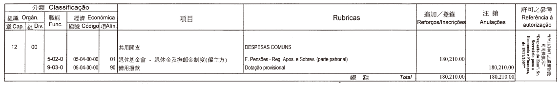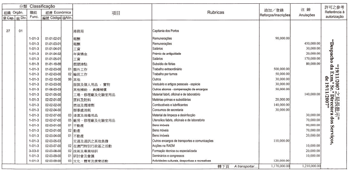 根據四月二十四日第6/2006號行政法規第四十一條的規定,茲公佈經由運輸工務司司長於二零零七年十一月十四日批示核准之郵政局二零零七年財政年度本身預算之第二次修改: