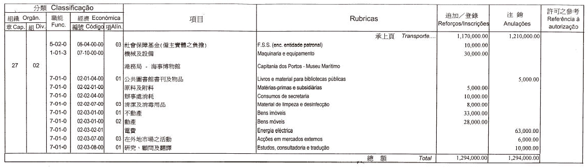 | 經濟分類 | 開支名稱 | 追加 / 登錄 | 註銷 | ||||
