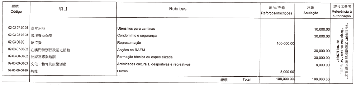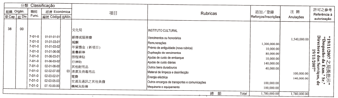 根據三月十七日第6/2006號行政法規第四十一條,以及第347/2006號行政長官批示附件I第八款規定,現刊登有關二零零七年度澳門大賽車獨立預算之第七次修改,該修改獲社會文化司司長在二零零七年十一月十五日批示核准: