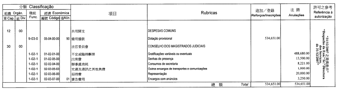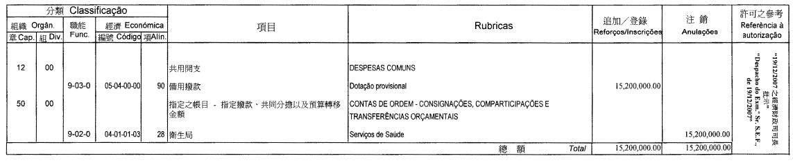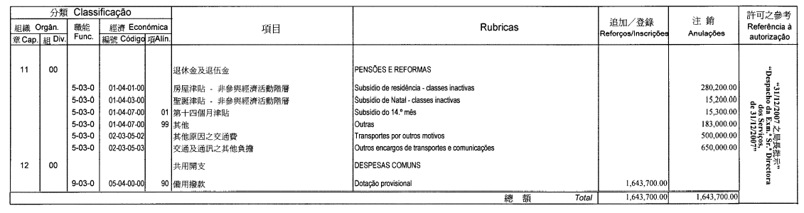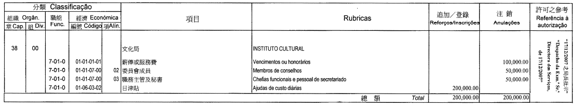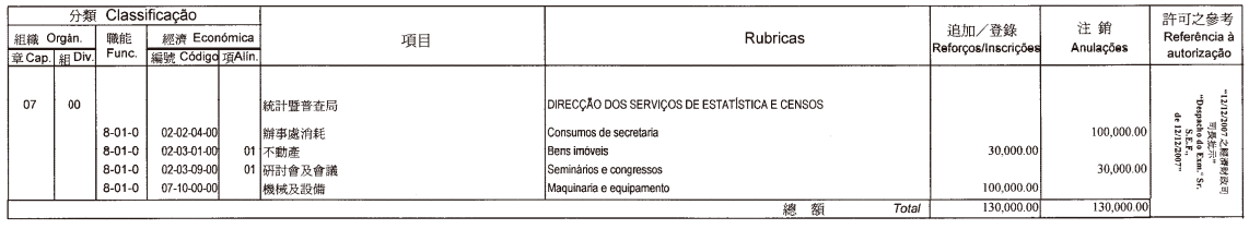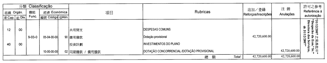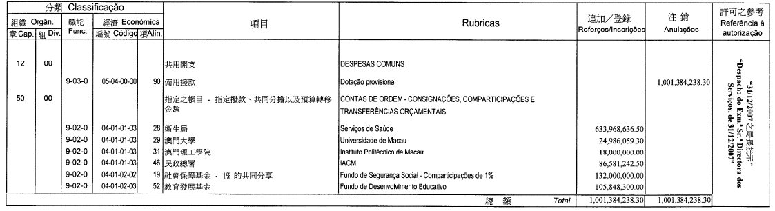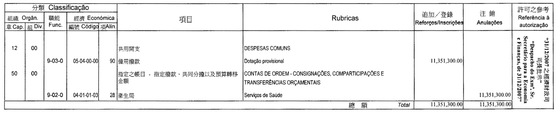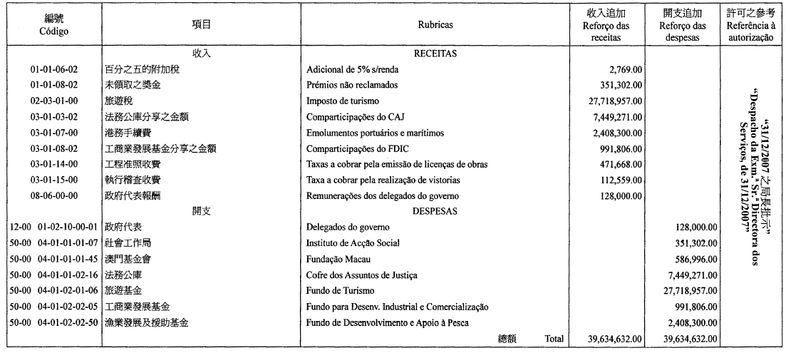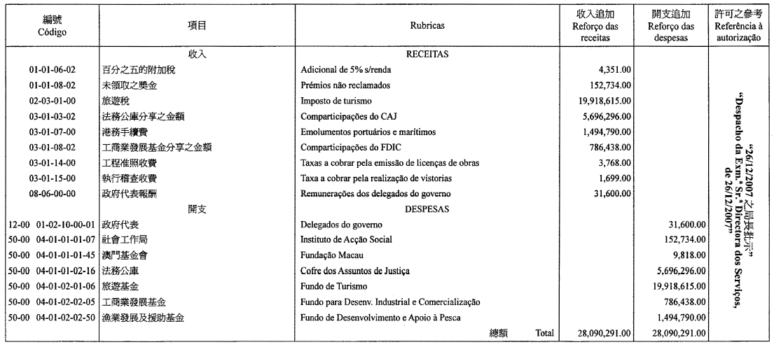 根據二零零七年十二月十九日經濟財政司司長批示所示,並根據四月二十四日第6/2006號行政法規第三十九條第二款第3)項及行政程序法典第一百二十六條第三款及第四款規定,民政總署第三次預算修改草案已獲追認,並自行政法務司司長給予批准之日起,以追溯其效力。