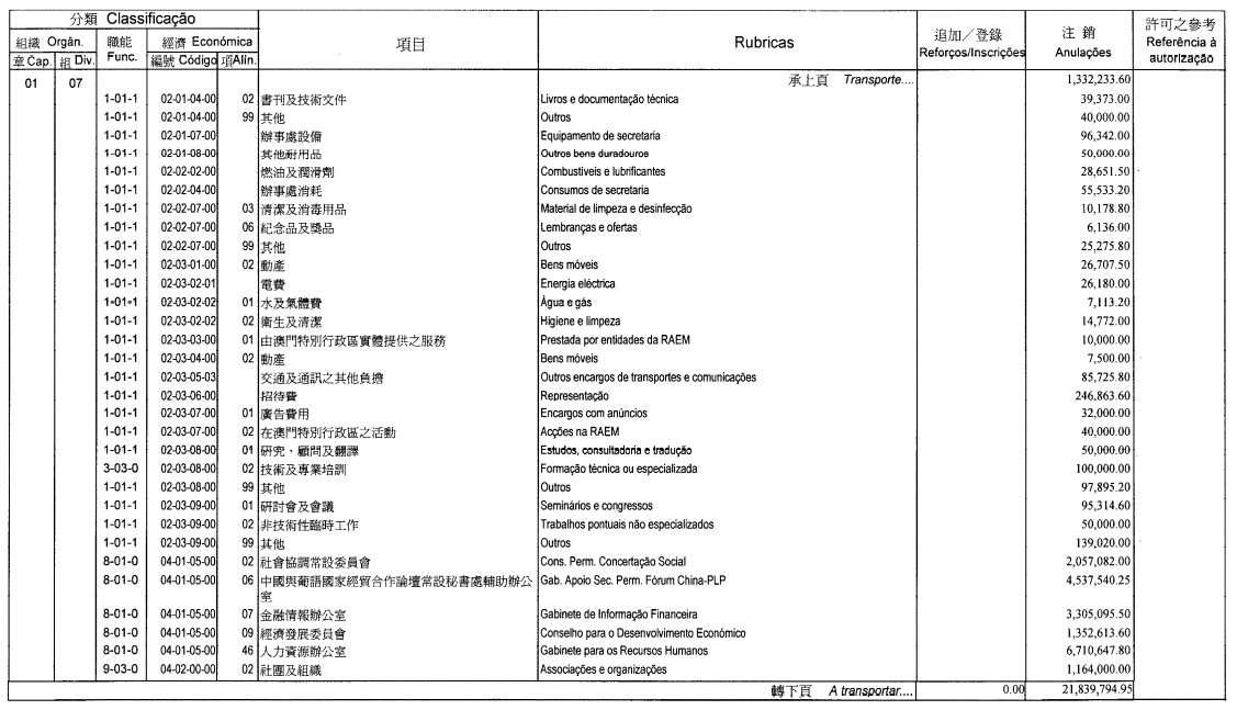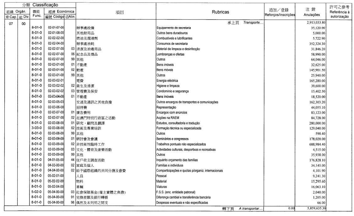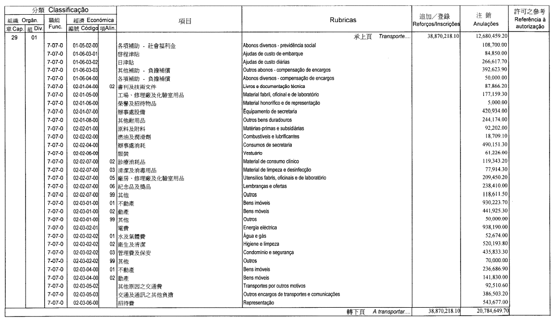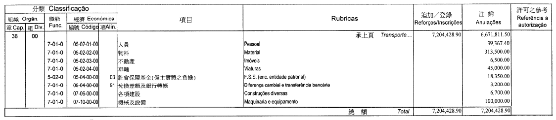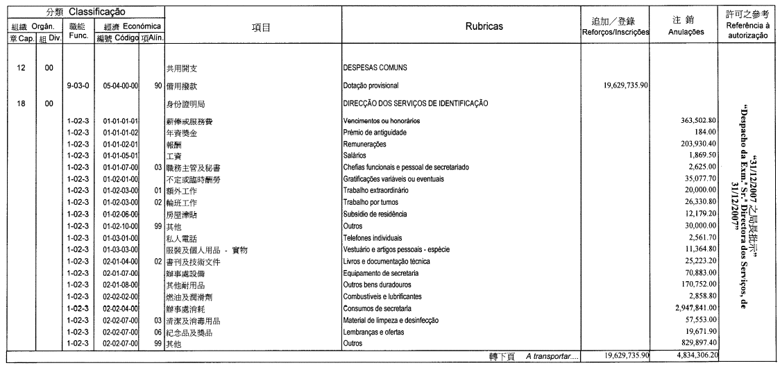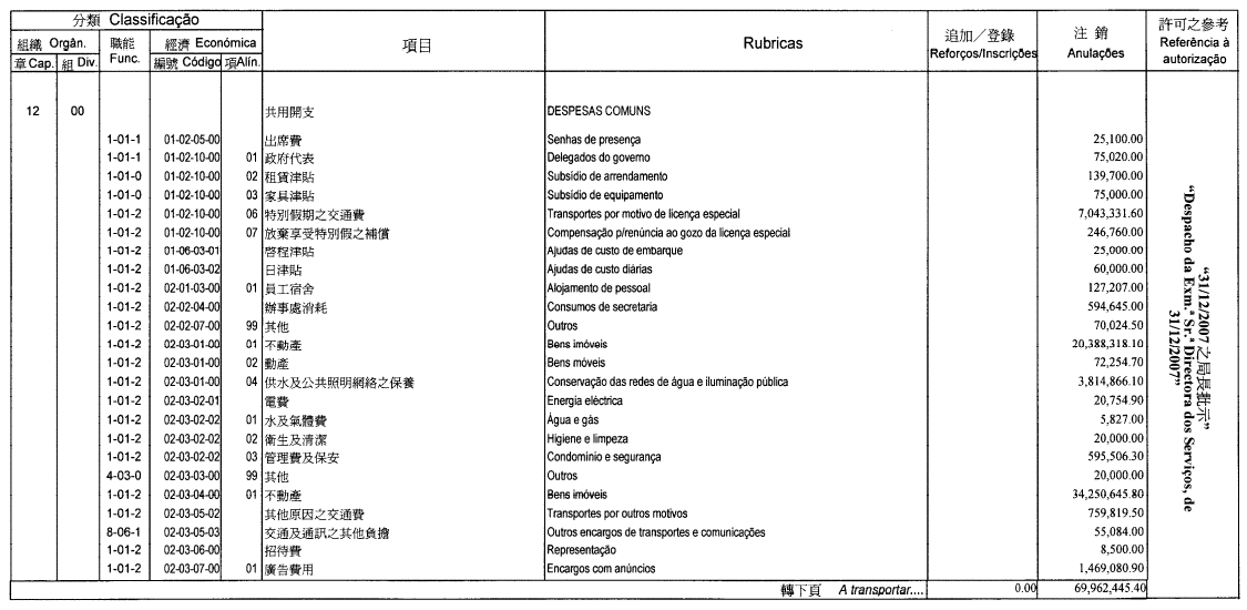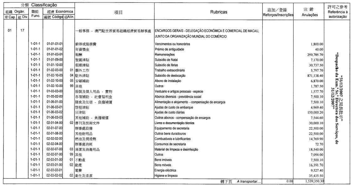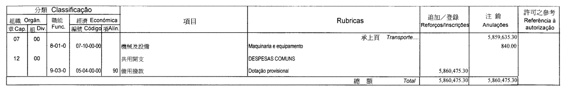 根據第6/2006號行政法規第四十一條的規定,茲公佈下列(澳門特別行政區財政預算/二零零七)款項轉帳,該轉帳按第347/2006號行政長官批示第二款規定所 核准: