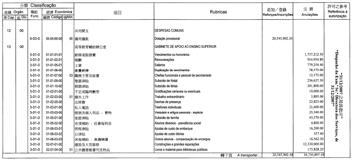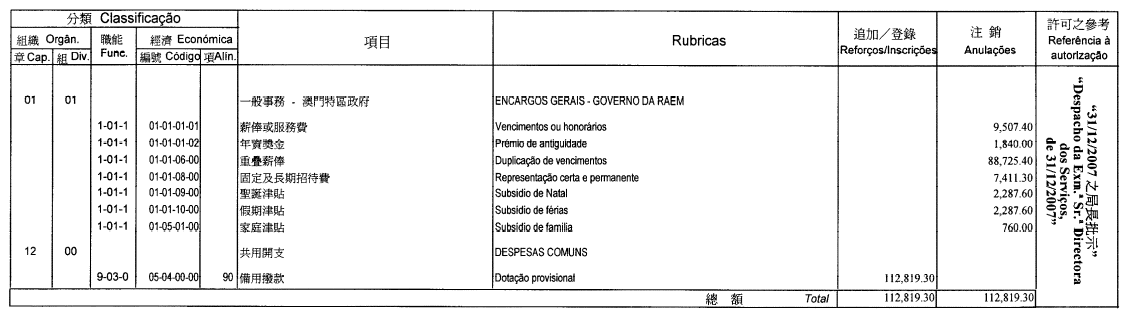 按照行政法務司司長於二零零七年十二月十九日的批示: