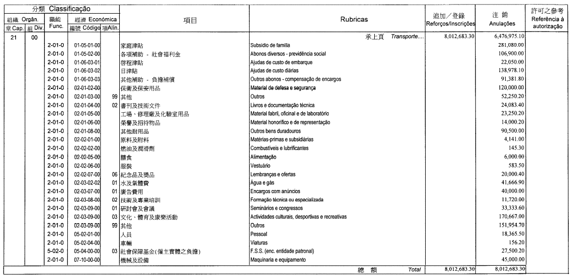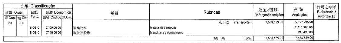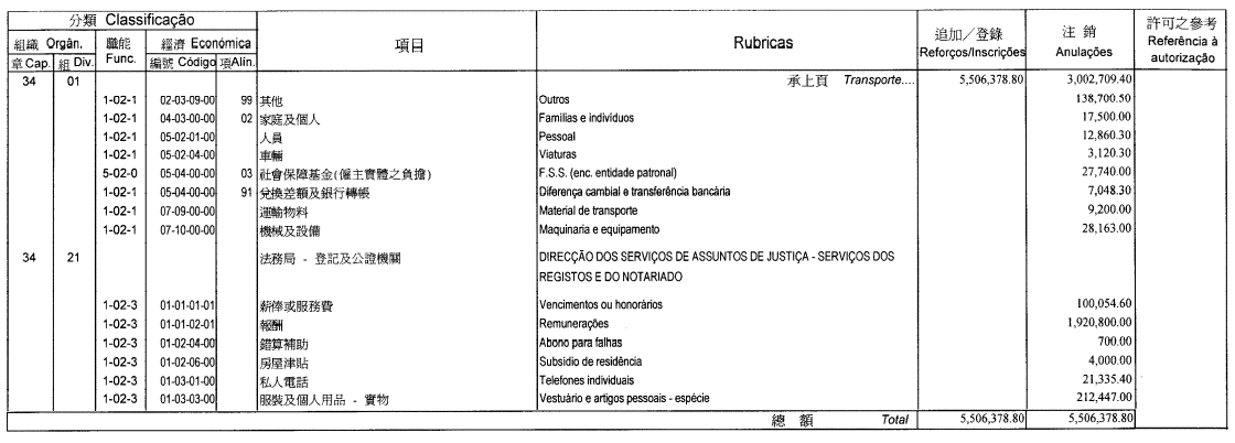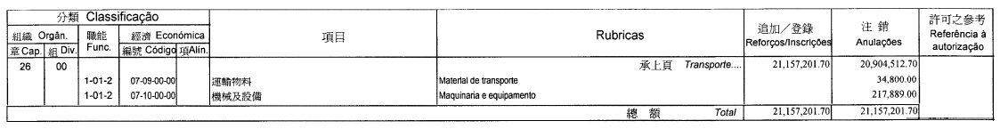 根據第10/2006號法律第十一條三及四款之規定,茲公佈下列(澳門特別行政區財政預算/二零零七)款項轉帳,該轉帳由經四月二十七日第22/87/M號法令第一 條修訂的十一月二十一日第41/83/M號法令第二十一條及第二十二條規定所核准: