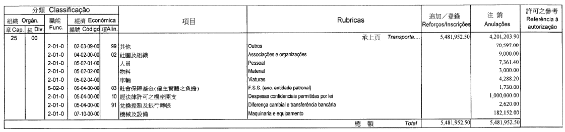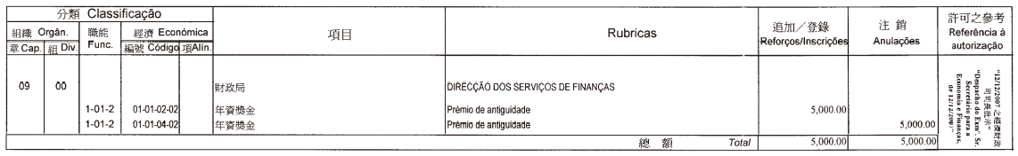 | 01 | 01 | 06 | 00 | 00 | 重疊薪俸 | 250,000.00 | |